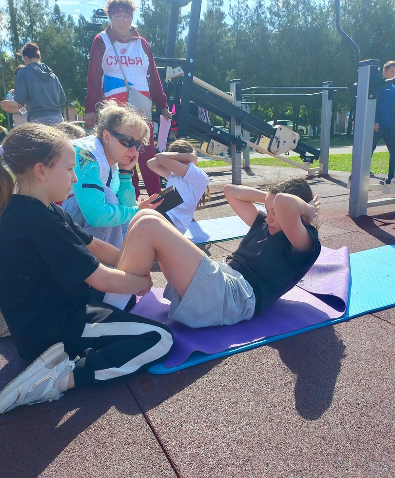 В личном зачете школьники соревновались в дисциплинах: прыжок в длину с места, наклон вперед из положения стоя на гимнастической скамейке, отжимания от пола или подтягивания на перекладине, бег на 60 метров, а также поднимание туловища из положения лежа на спине за одну минуту.