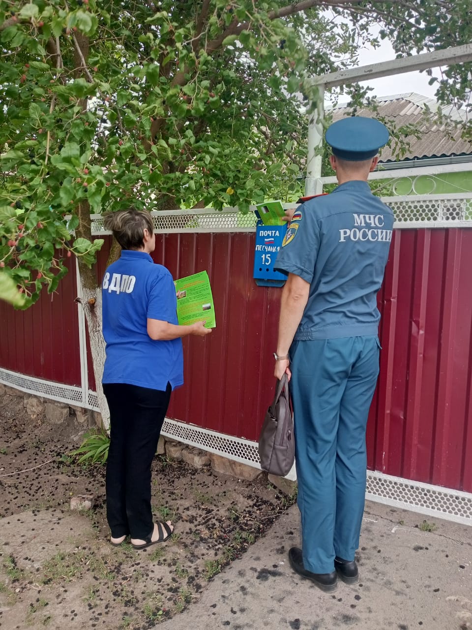 В рамках противопожарных мероприятий представители ВДПО и МЧС распространяли среди жителей информационные листовки с телефонами экстренных служб.