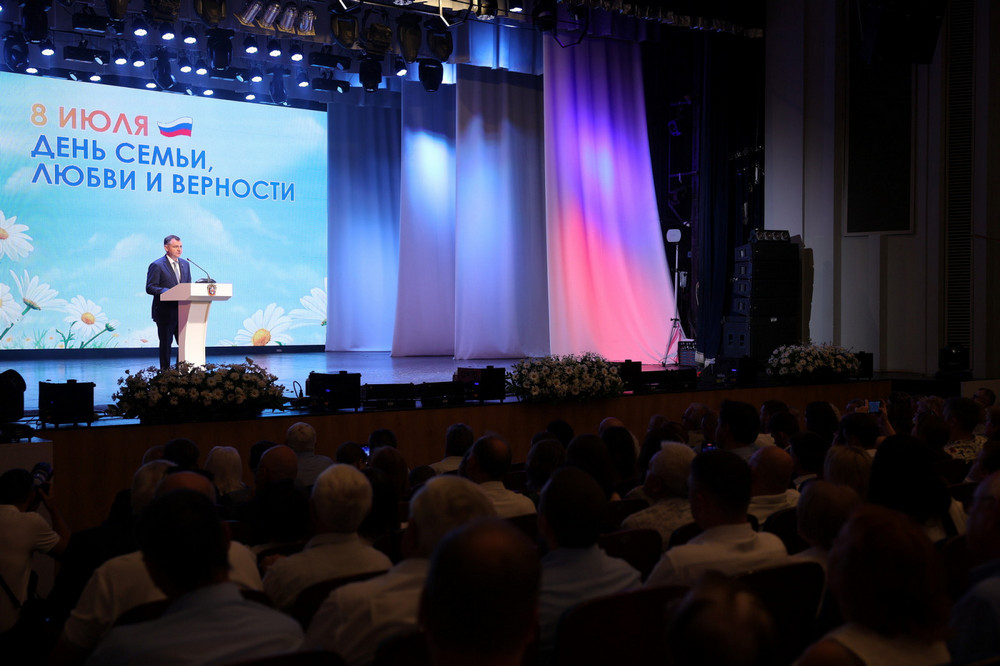 Юрий Слюсарь говорил о поддержке семей с детьми в Ростовской области и на торжественном приеме в честь Дня семьи, любви и верности.