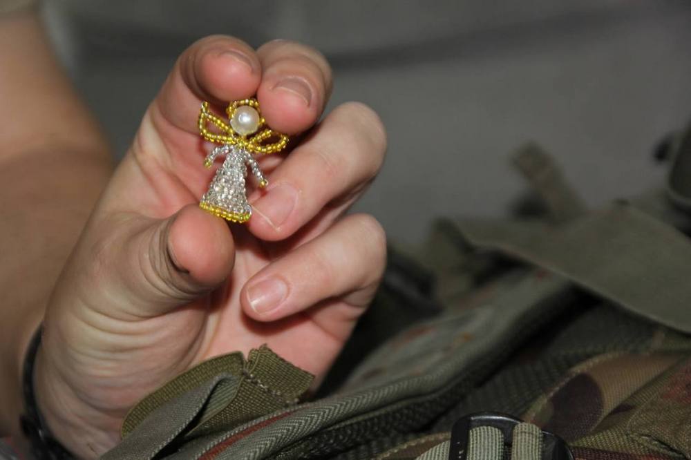 Этот талисман, дополненный молитвой Архангелу Михаилу и ободряющей запиской, попал к Александру, бойцу отряда «Шторм» с позывным «Рыбак». Он бережно хранил ангела рядом с армейским жетоном. В ожесточенном бою Александр потерял ногу из-за взрыва, но благодаря своевременной помощи был эвакуирован в госпиталь. Спустя полгода он освоил современный протез и пересел на автомобиль с автоматической коробкой передач. Дома он свято хранит реликвии: знамя подразделения, личный жетон, тактические перчатки, прошедшие с ним 10 боевых операций, рюкзак, задетый осколком, пачку сигарет – память о погибшем друге, и, конечно же, ангела-хранителя из бисера.