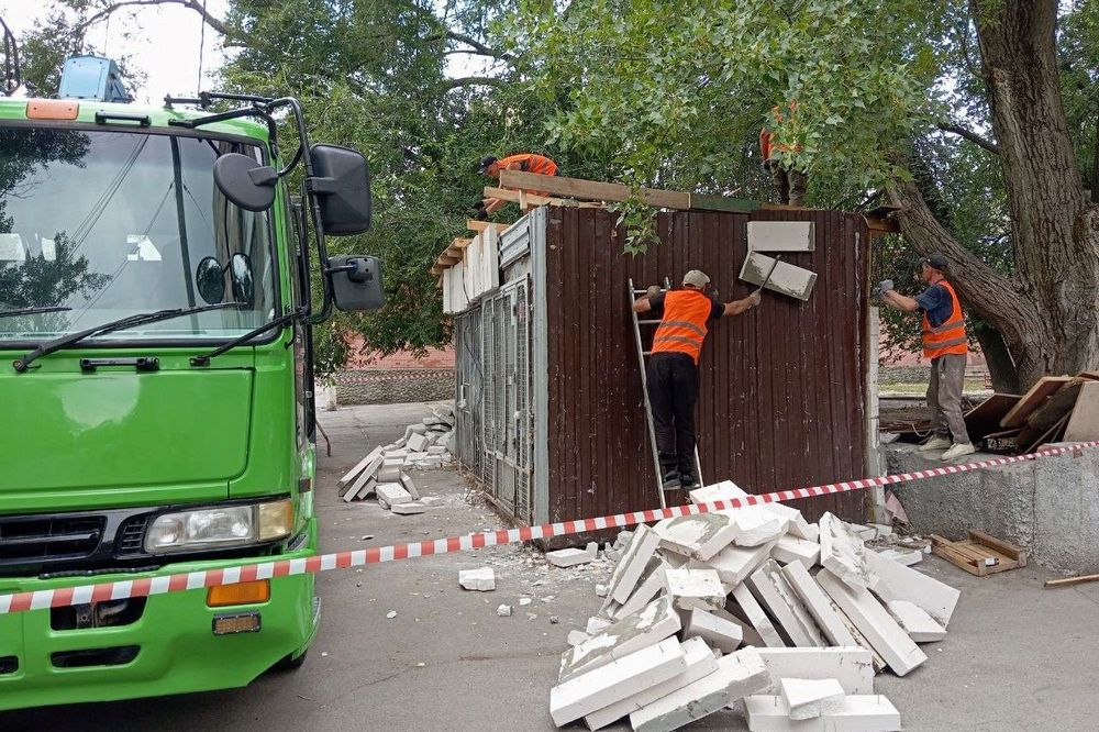 Сегодня, 4 августа, в Ростове был произведен демонтаж торгового объекта на улице 20-летия Октября. Проверка выявила ряд серьезных нарушений, включая расположение вблизи линий электропередач, отсутствие необходимых разрешений и документов, подтверждающих происхождение и качество продукции. Кроме того, владелец пытался придать объекту вид капитального строения, обложив его газобетонными блоками.