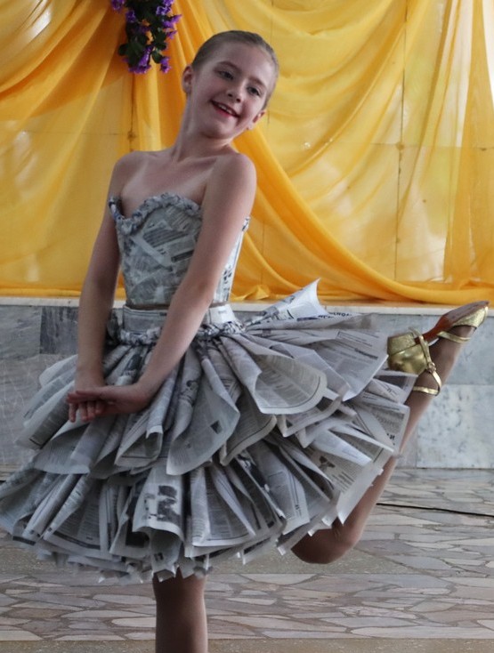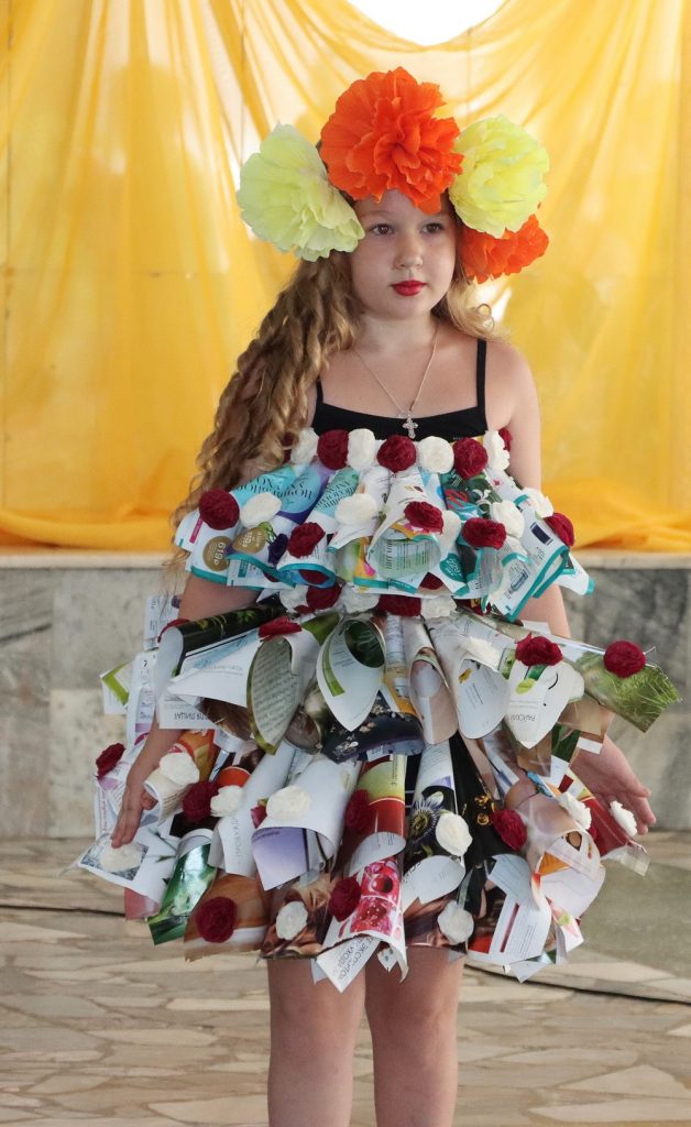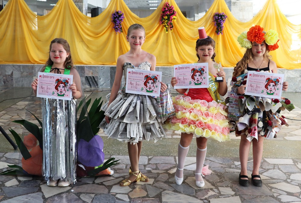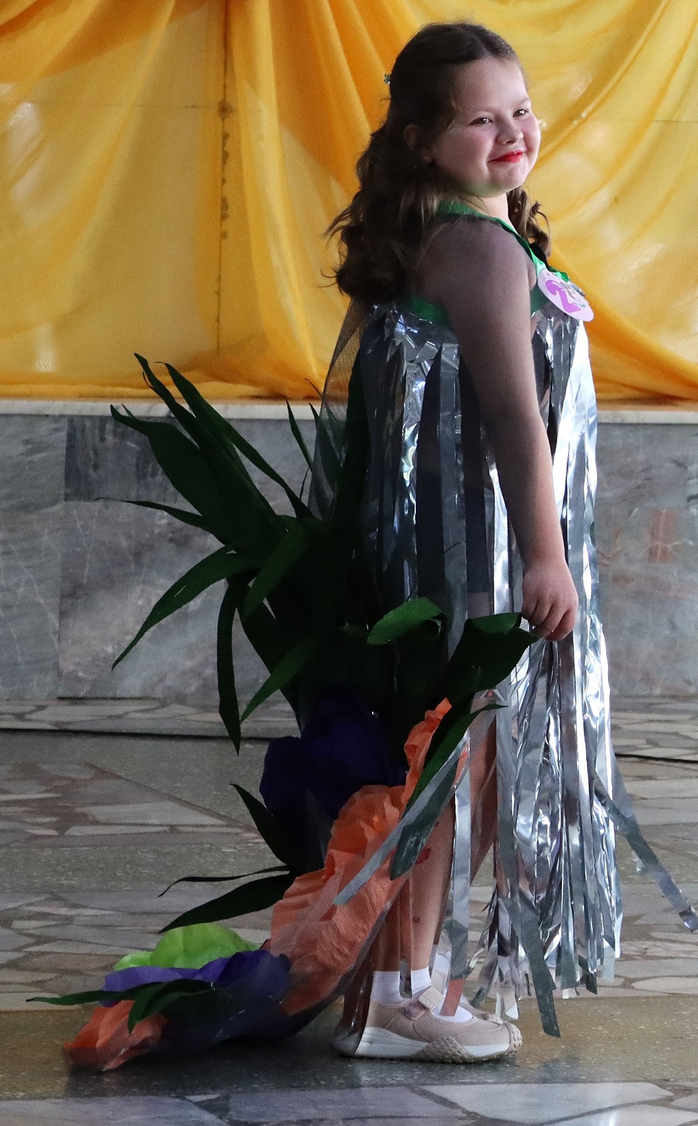 Завершающим аккордом мероприятия стало дефиле юных леди. Участницы предстали перед зрителями в нарядах, изготовленных из необычных материалов.