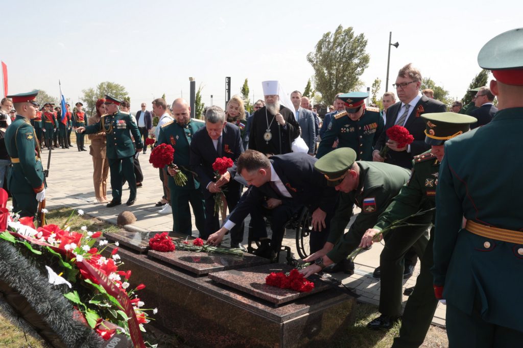 В церемонии памяти героев Великой Отечественной войны также приняли участие заместитель полномочного представителя Президента РФ в Южном федеральном округе Владимир Гурба, председатель Законодательного собрания Ростовской области Александр Ищенко, руководитель регионального отделения «Поисковое движение России» Владимир Щербанов и юнармейцы.