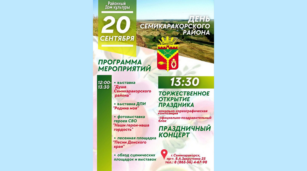 ВНИМАНИЕ, семикаракорцы! Праздник, посвященный Дню Семикаракорского района, пройдёт 20 сентября в районном Доме культуры.