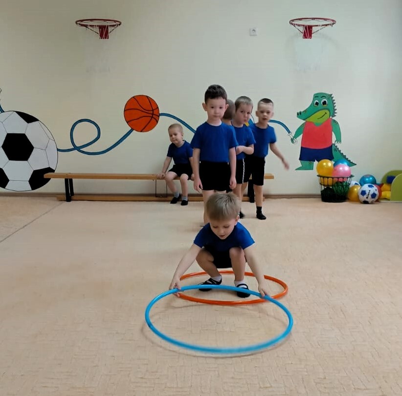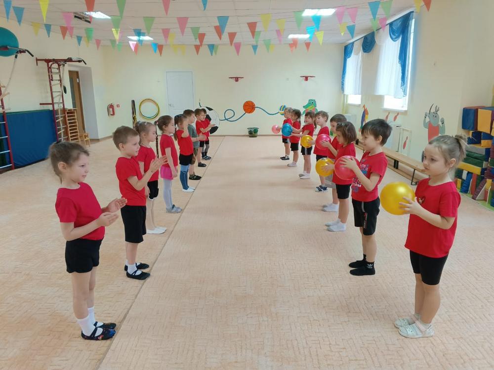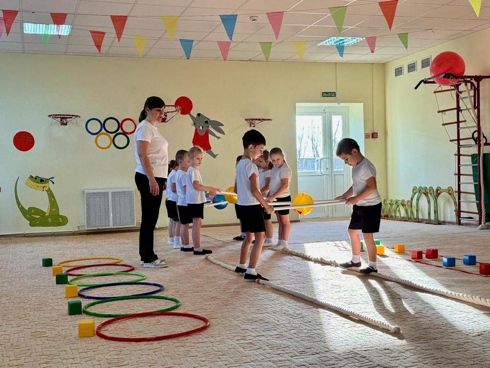 Физкультурные занятия проводятся трижды в неделю, причем одно занятие проходит на свежем воздухе. В процессе двигательной активности дети выполняют разнообразные общеразвивающие упражнения с использованием спортивного инвентаря, такого как мячи, кубики и гимнастические палки. Также организуются подвижные игры.