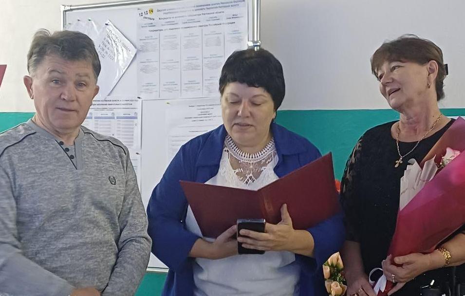 В этот знаменательный день супруги Демочко вместе пришли на выборы главы донского региона и, проголосовав, прямо на участке приняли поздравления с днём свадьбы от администрации поселения, родных и близких и благодарных хуторян. Да и все, кто знает Наталью Александровну и Виктора Алексеевича, присоединяются к поздравлениям и желают, чтобы этот юбилей привнес в жизнь супругов много сверкающих красок, а чувства остались крепкими и яркими, как драгоценный камень рубин! Много вам новых, радостных событий, семейного счастья, неиссякаемой энергии, мира и достатка.