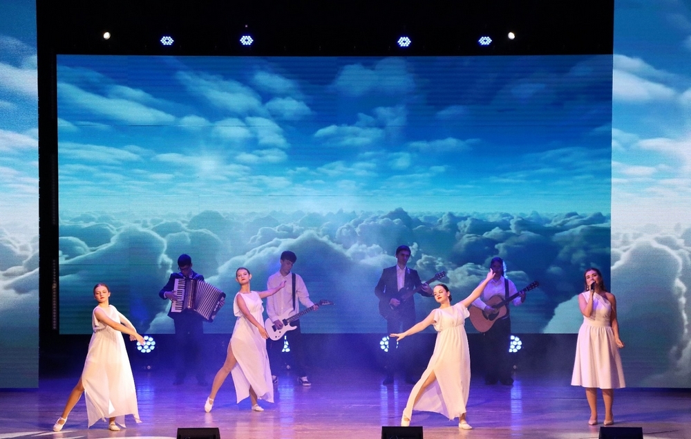 Начался концерт с яркого вступления – песни «Русский мир», исполненной вокалистами РДК и дополненной танцевальной композицией.