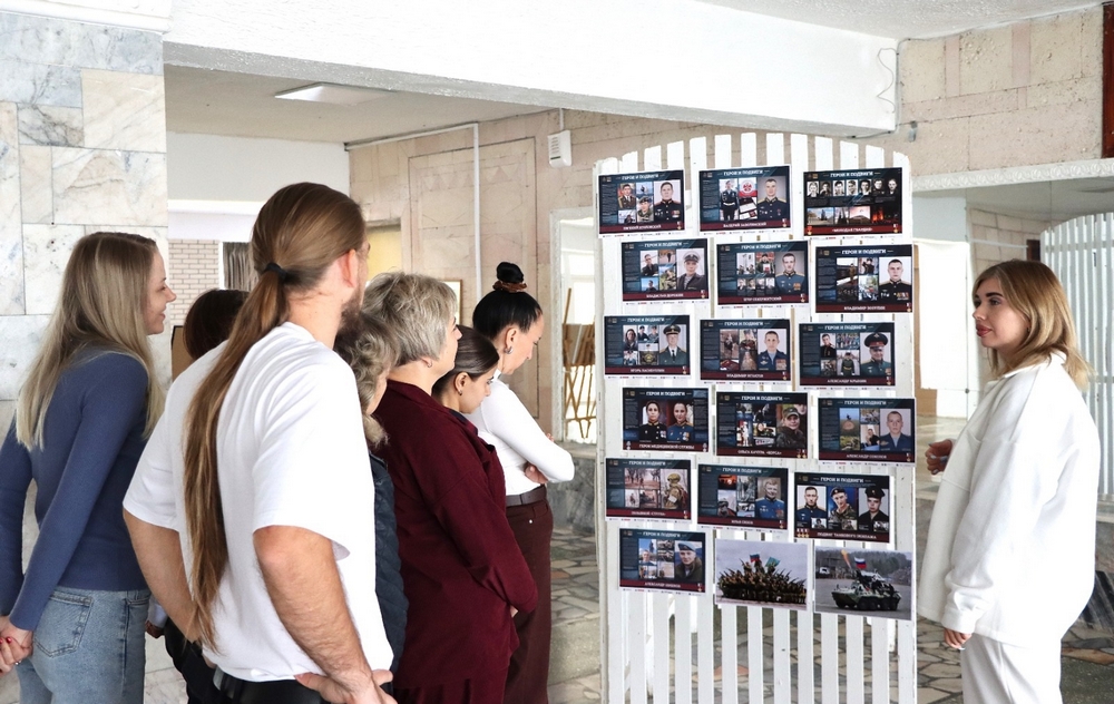 Посетители выставки получили возможность узнать о судьбах героев, участвовавших в специальной военной операции, изучить сведения об их воинских подвигах и полученных знаках отличия.