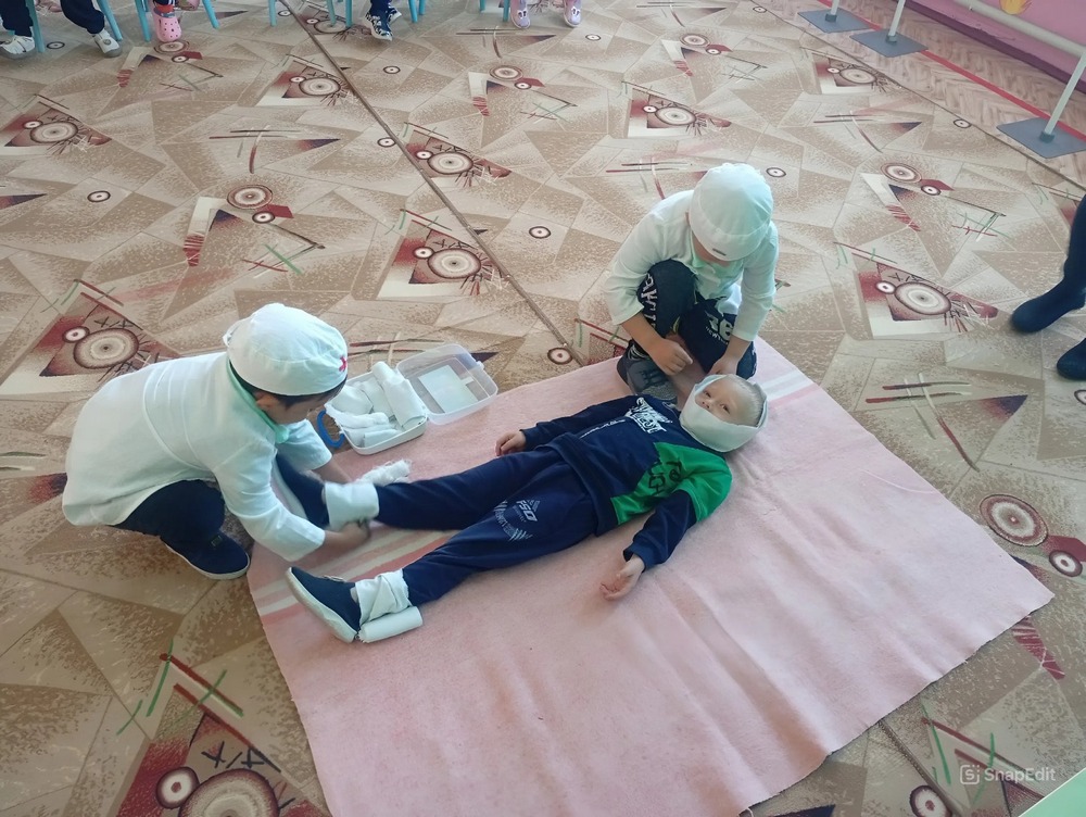 На практическом занятии с дошкольниками были смоделированы сценарии нескольких опасных ситуаций, включая эвакуацию пострадавшего, действия при пожаре и оказание первой медицинской помощи.