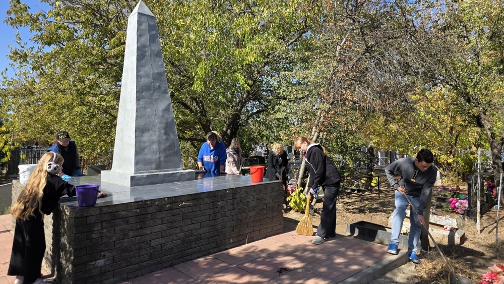 В минувшую субботу группа активистов (Дарья Аристархова, Вадим Демченко, Арина Михеева, Анастасия Агошкова, Андрей Якушев, Иван Межов, Анатолий Муфтимев, Виолетта Шевелева, Андрей Бороздин) из школы №3 города Семикаракорска совместно с куратором Ириной Андреевной Баранчиковой и представителями сообщества «Родные – Любимые» Ольгой Николаевной Капцовой и Верой Сергеевной Михеевой, реализовали ежегодную акцию «Обелиск», направленную на облагораживание территории вокруг памятников павшим воинам на городском кладбище.