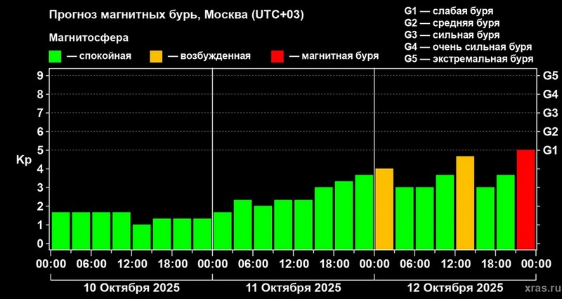 Стоит ли ожидать магнитной бури 12 октября 2025 года, и какой будет ее интенсивность?