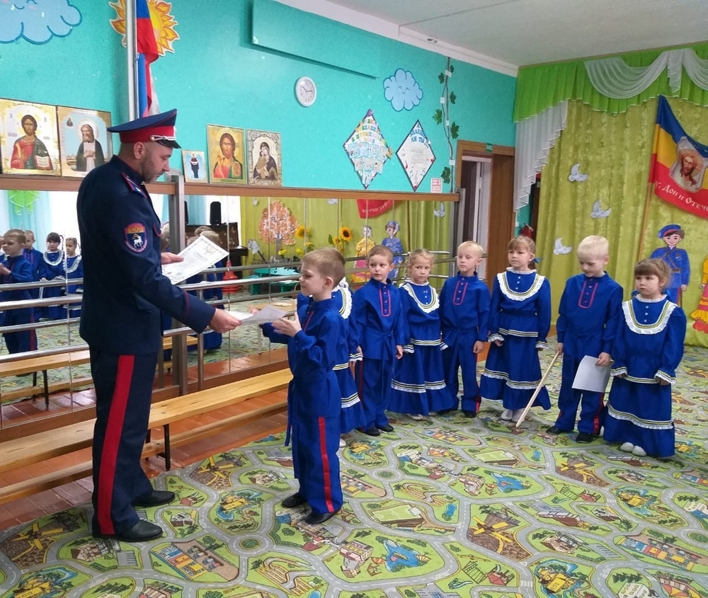 В семикаракорском детском саду «Звездочка» состоялось знаменательное событие – здесь принимали малышей в казачата. Этот день останется светлым воспоминанием для всех присутствующих. Воспитанники детсада, ощущая волнение и гордость, примерили казачью форму и с воодушевлением ожидали начала торжества.