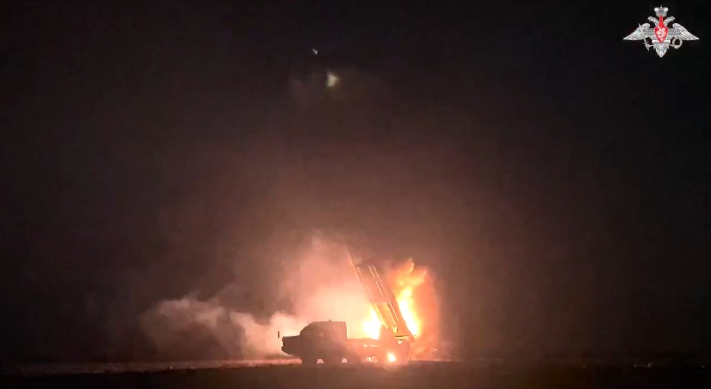 В следующем посте уточняется, что в атаке задействованы десятки истребителей МиГ-31К, стратегических бомбардировщиков Ту-95МС и Ту-160 ВКС России.