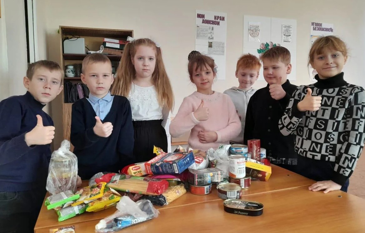 Ученики приносят из дома продукты питания — макароны, крупы, консервы, конфеты, печенье, пряники, предметы первой необходимости и личной гигиены — влажные салфетки, зубную пасту и щетки, мыло, шампуни, носки и перчатки. С помощью родителей и педагогов ребята доставляют все в пункт сбора гуманитарной помощи в г. Семикаракорске.