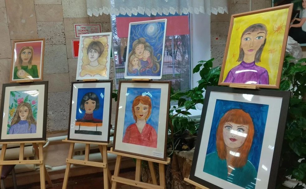 А воспитанники художественного отделения школы искусств к этому празднику подготовили выставку «Любимым нашим мамам». Ребята постарались изобразить своих мам, передав сходство. Некоторые представили сюжетные композиции. Выставка получилась очень интересной и душевной.