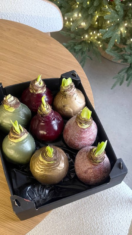 2. Декоративность и чистота. Восковые луковицы часто украшают блёстками, рельефными узорами, новогодними орнаментами. Они служат не только растением, но и готовым праздничным декором.