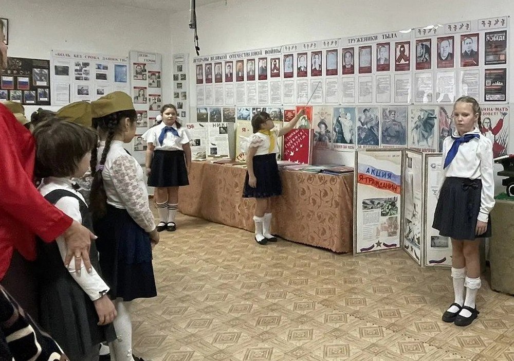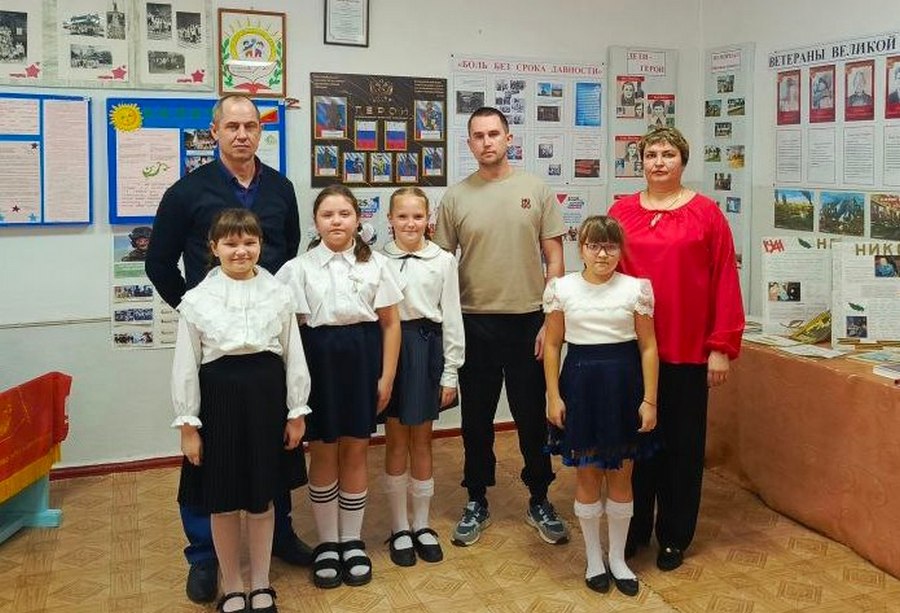 — Наш школьный музей — источник, пополняющий духовные силы ребят, сохраняющий коллективную память, центр патриотической работы в школе, — рассказывает С.Л. Салтыкова. — Такие экскурсии способствуют положительной нравственной оценке патриотизма, преумножению героических страниц в истории страны, и малой родины и осознанию себя частью русской истории и культуры. Ученики ознакомились с традициями праздника, вспомнили имена ветеранов Великой Отечественной, тружеников тыла, детей войны и участников специальной военной операции из поселка Крымского. Экскурсоводы сфотографировались на память с бойцами СВО Ю.Н. Ивановым и А.Г. Зеленским.