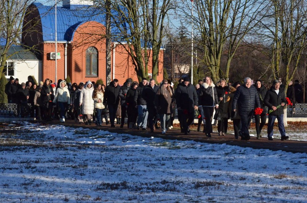 Присутствующие почтили память павших минутой молчания.
