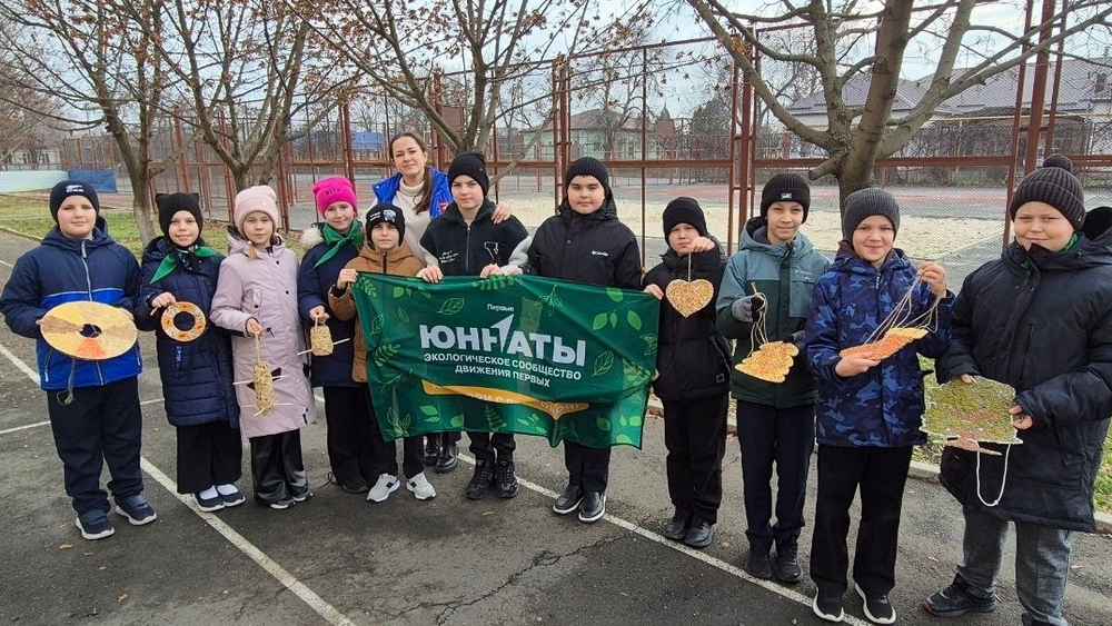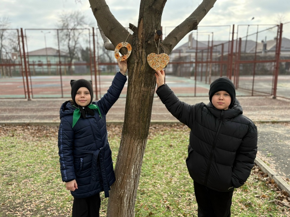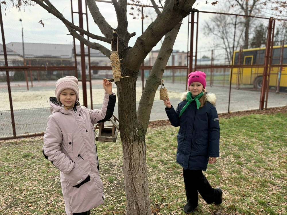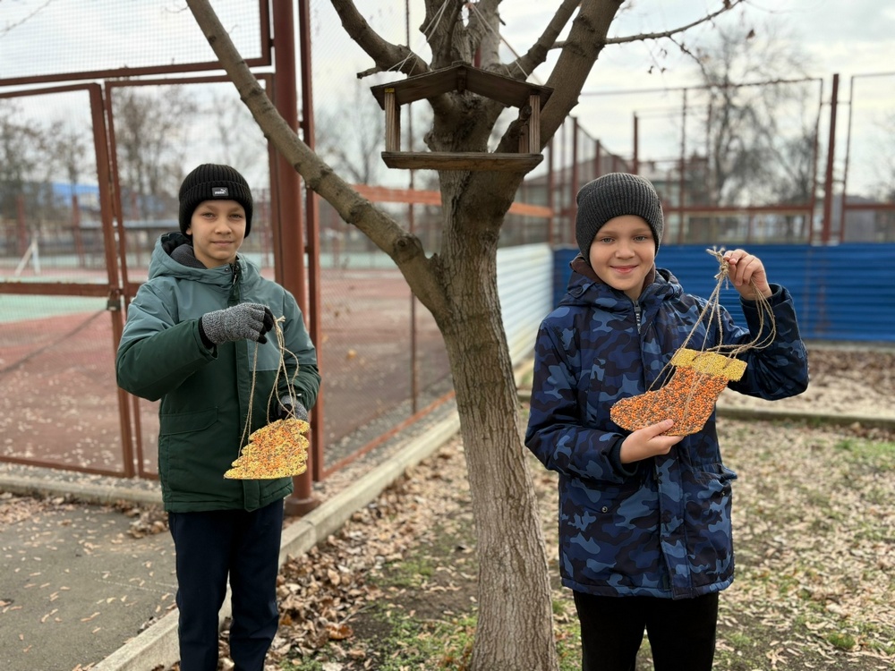 Собственноручно изготовленные экологичные кормушки были размещены на территории школы. Эти нехитрые конструкции призваны оказать поддержку птицам в суровые зимние месяцы.