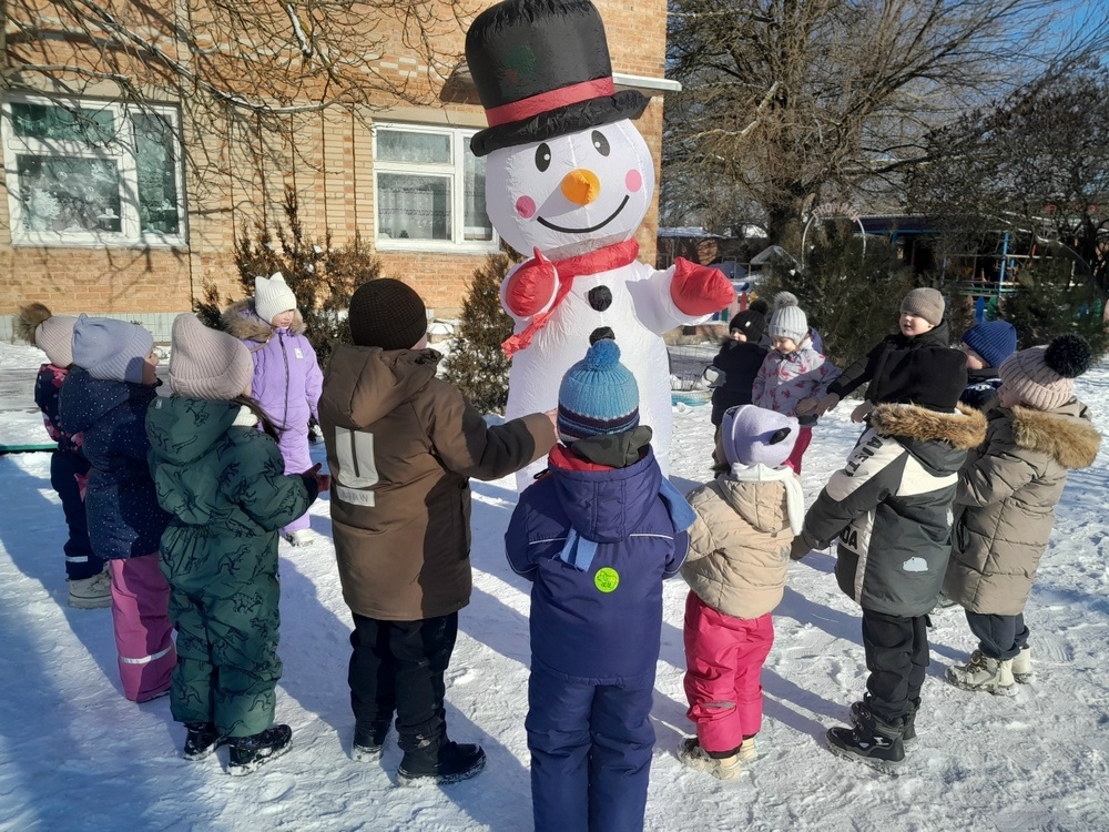 В городском детском саду «Сказка» маленькие воспитанники встречали Снеговика.