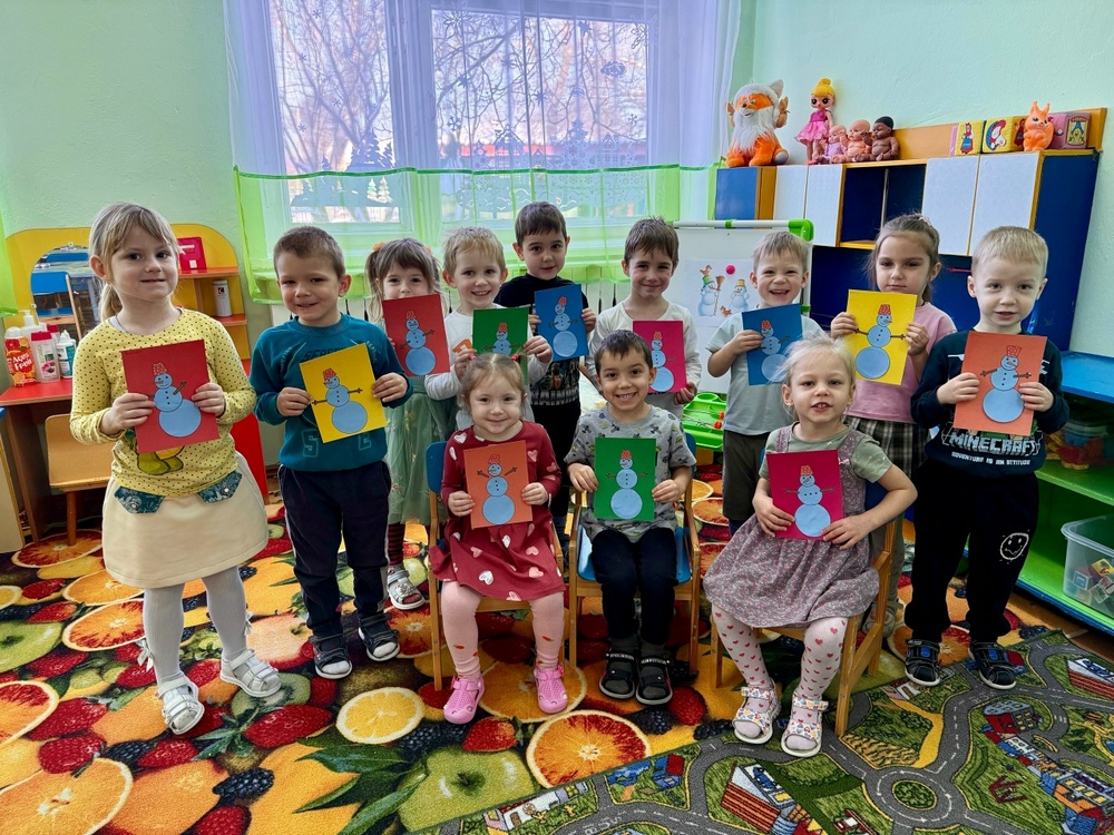 Малыши решили оригинально отпраздновать это радостное событие, проявив творчество: вдохновленные снегом, они смастерили целую выставку снеговиков в технике аппликации.