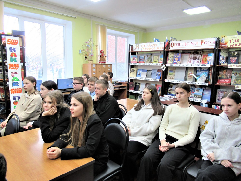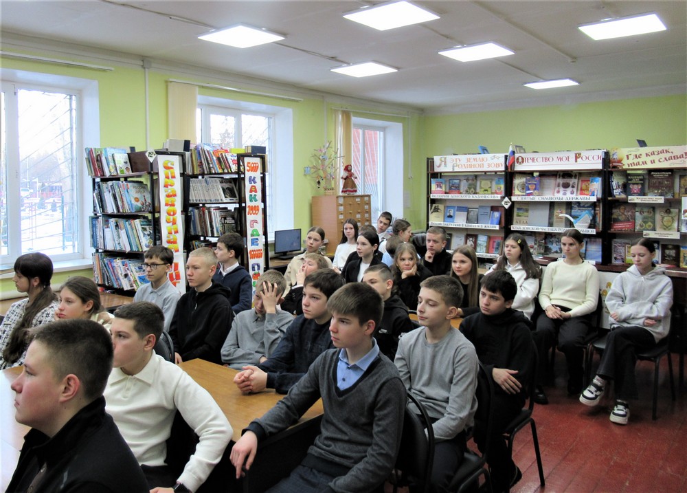 2 февраля — День воинской славы России — День разгрома советскими войсками немецко-фашистских войск в Сталинградской битве в 1943 году. Этой знаменательной дате был посвящён урок мужества «Сталинград: крепость из стали, сердец и огня», который прошёл 3 февраля в читальном зале детского отдела Семикаракорской межпоселенческой центральной библиотеки для обучающихся 7 «В» класса средней школы № 1.