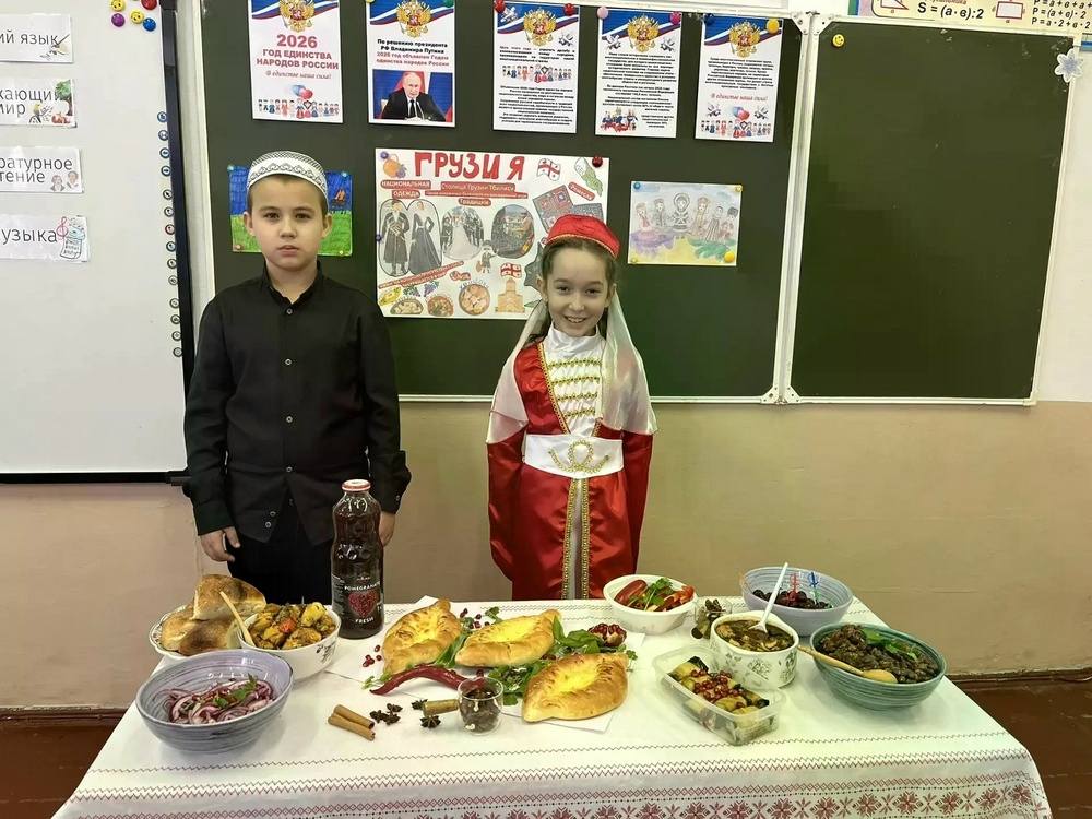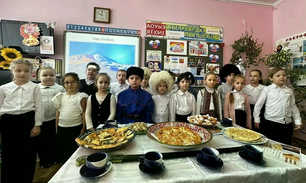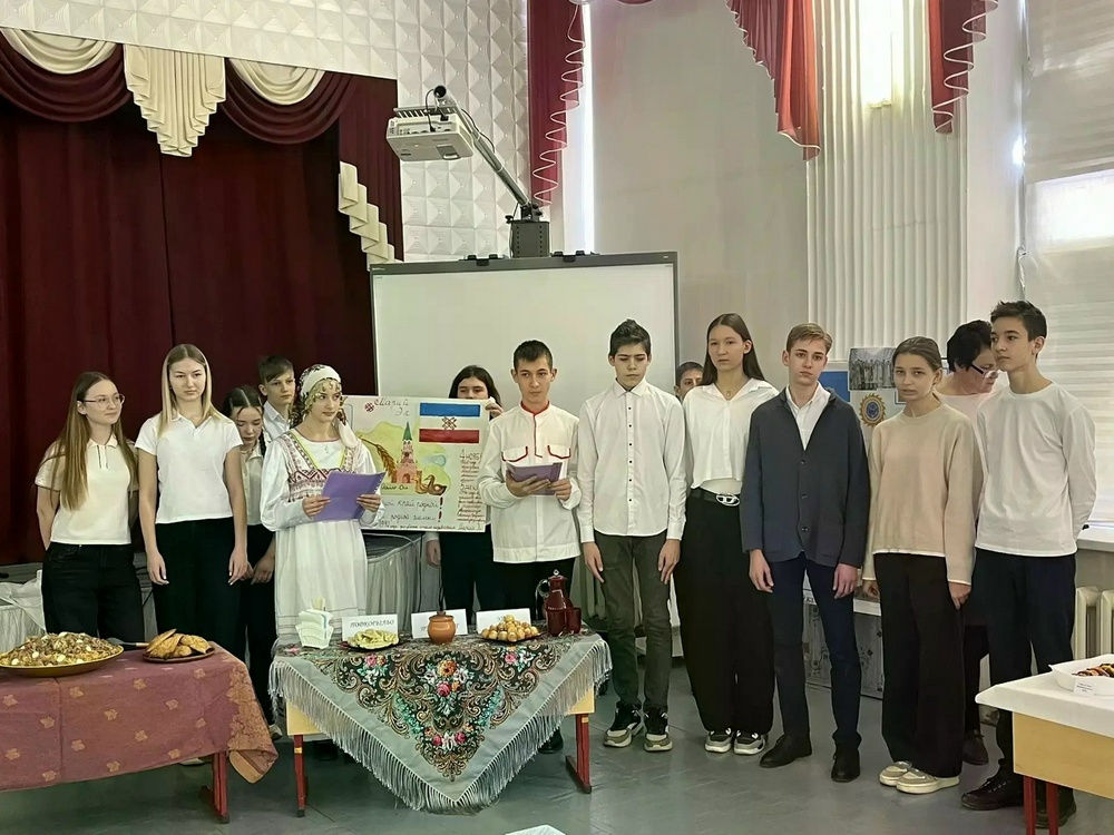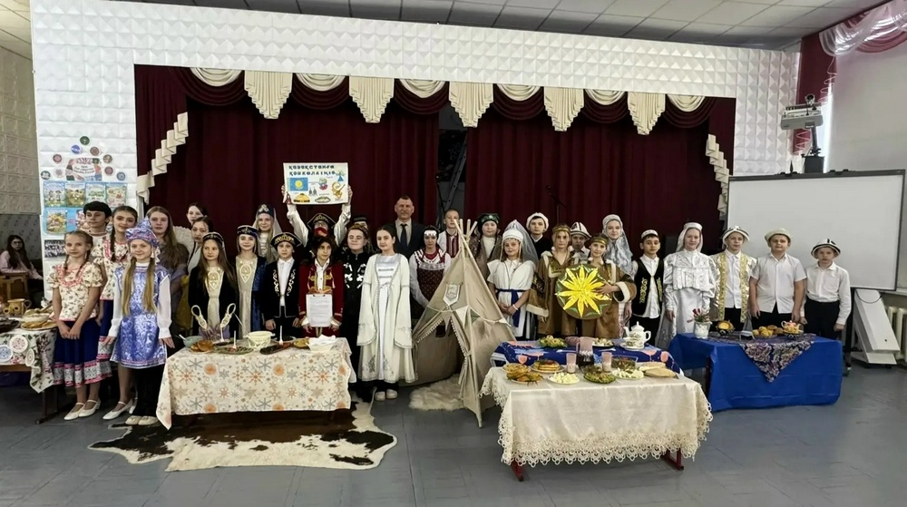 В рамках конкурса «Хлебосольный город» школьники, облаченные в колоритные национальные наряды, презентовали свои тематические стенгазеты и угощали гостей традиционными блюдами. Запах свежей выпечки и радушный прием создавали атмосферу настоящего народного гулянья.