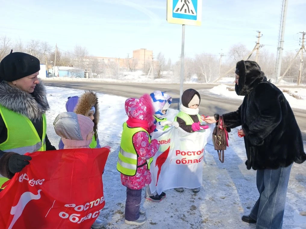В акции также приняла участие Ольга Николаевна Капцова, председатель местного отделения движения «Первые». Она вручила юным инспекторам движения памятные подарки с эмблемой «Первых».