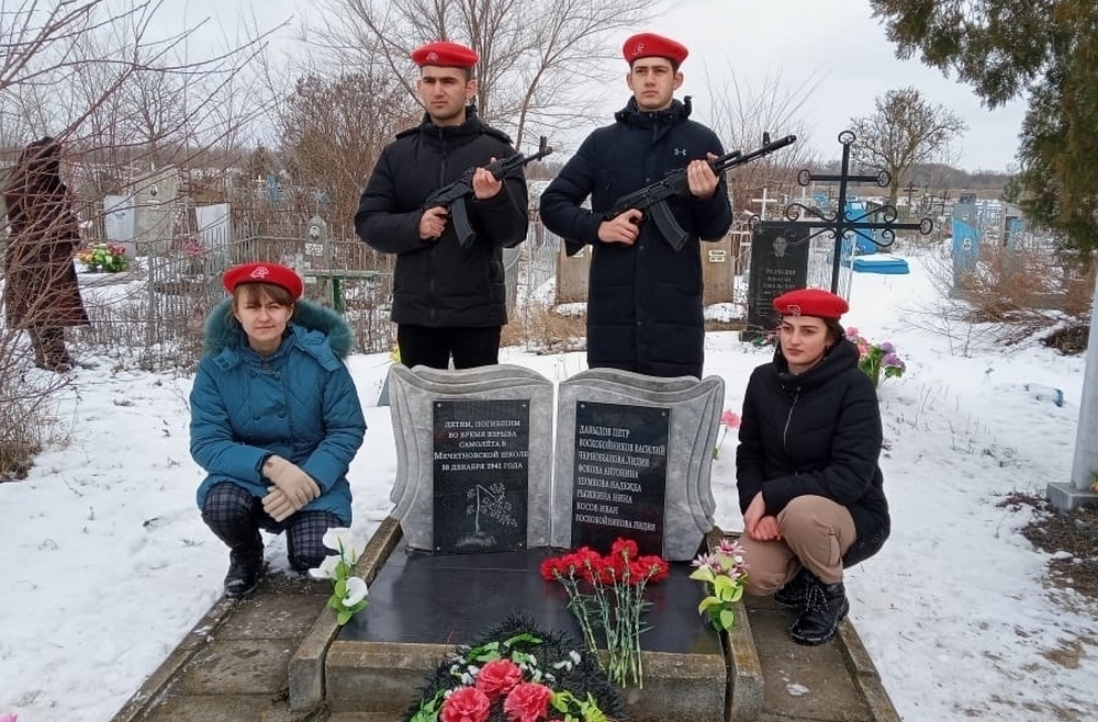 Активисты отделения «Движения первых» из Мечетновской школы неустанно заботятся о мемориале, посвященном восьми детям, погибшим во время Великой Отечественной войны из-за падения самолёта на хуторскую школу.