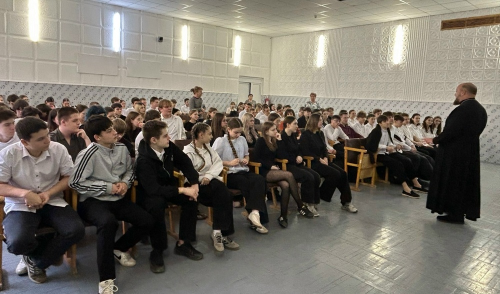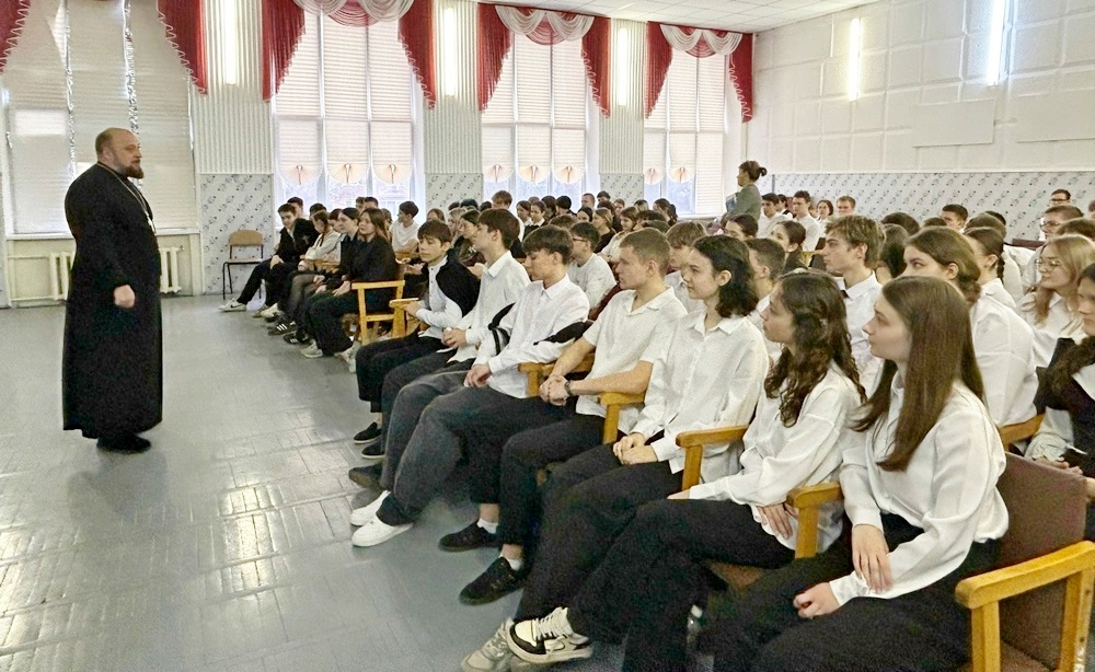 В Семикаракорской школе №2 состоялась встреча учащихся старших классов с настоятелем храма Казанской иконы Божией Матери протоиереем Димитрием Морозовым.