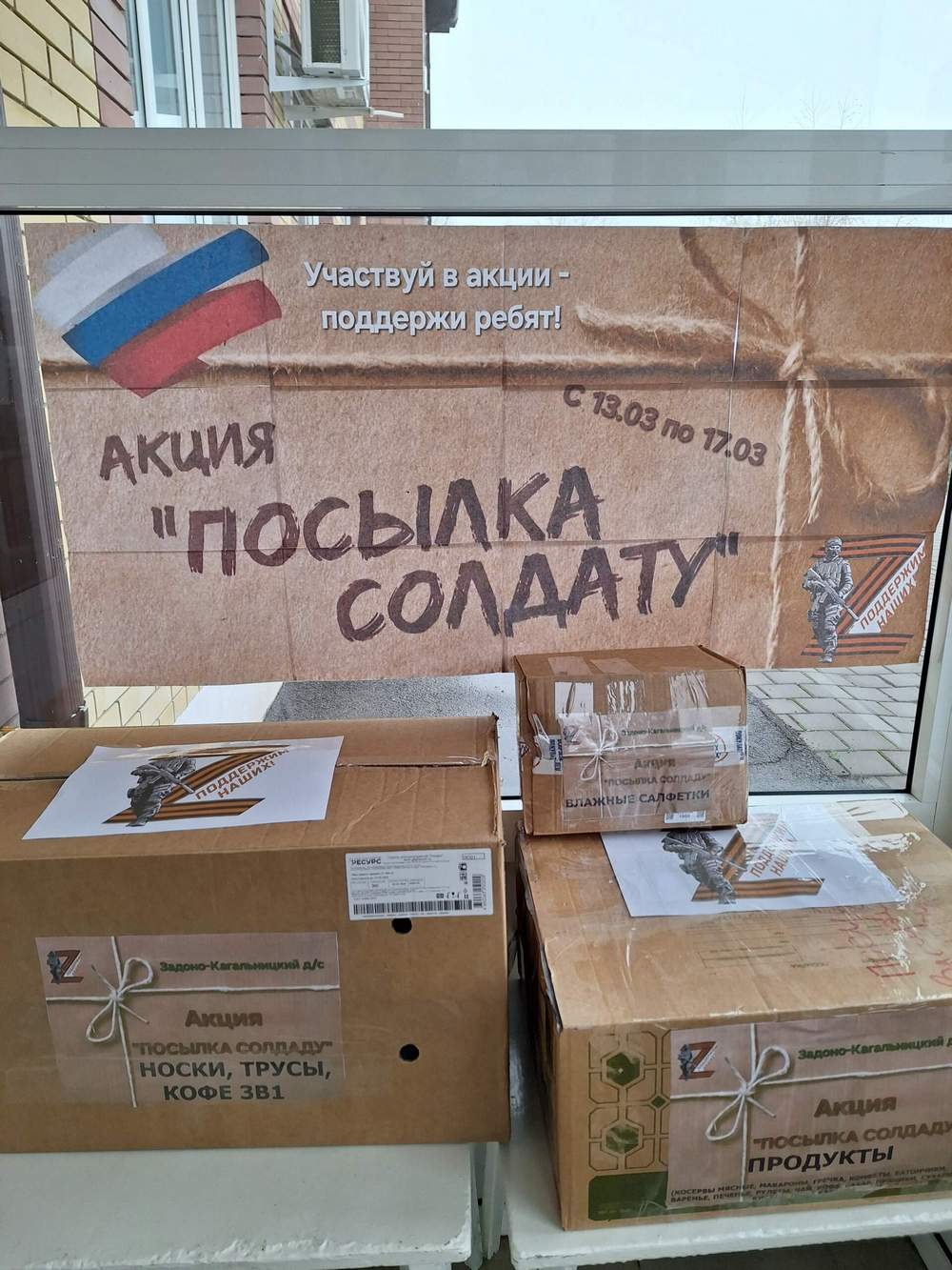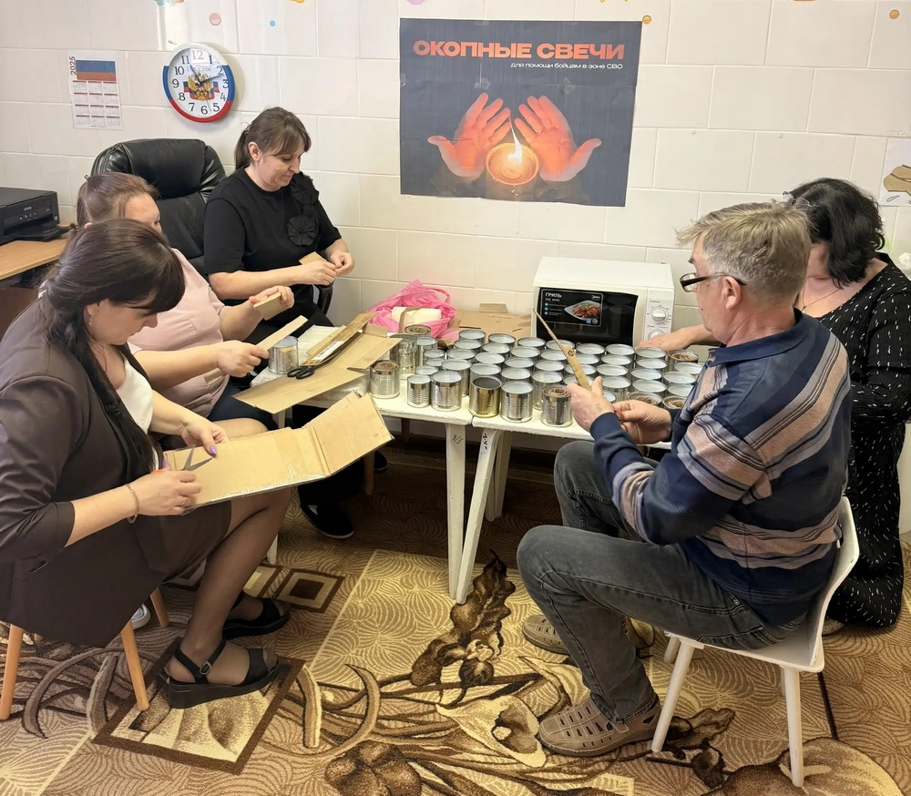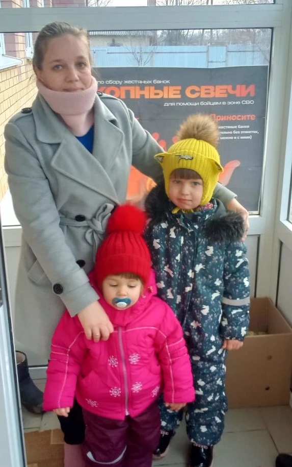 Родители совместно с детьми охотно присоединяются к сбору продуктов питания, предметов первой необходимости и жестяных банок, которые используются для производства окопных свечей для нужд военнослужащих.