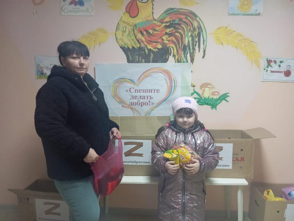 Самые маленькие воспитанники с гордостью приносят из дома крупы, макаронные изделия, энергетические батончики, консервы, а также теплую одежду — носки, шапки и перчатки.