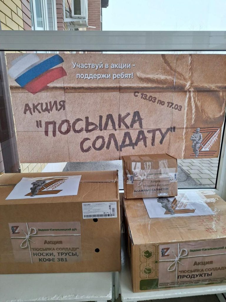 Сотрудники детского сада находят время не только для образовательной деятельности, но и для оказания гуманитарной помощи для наших бойцов на фронте: женщины занимаются подготовкой посылок, колют орехи, участвуют в изготовлении окопных свечей, проводят благотворительные акции и разрабатывают интересные способы вовлечения детей в полезные дела.