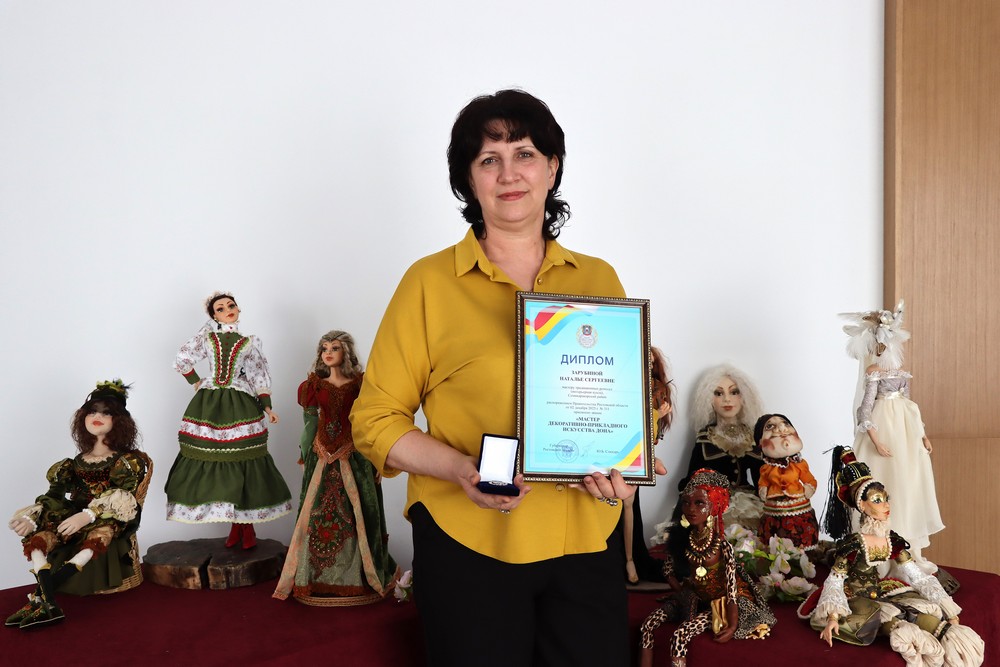 Кульминацией мероприятия стала торжественная церемония награждения. За многолетний добросовестный труд, высокий профессионализм и значительный вклад в развитие декоративно-прикладного искусства Ростовской области Наталья Зарубина, руководитель клубного формирования «Мастерская чудес», была удостоена почетного звания «Мастер декоративно-прикладного искусства Дона». Это признание ее таланта и преданности своему делу, которое вдохновляет многих.