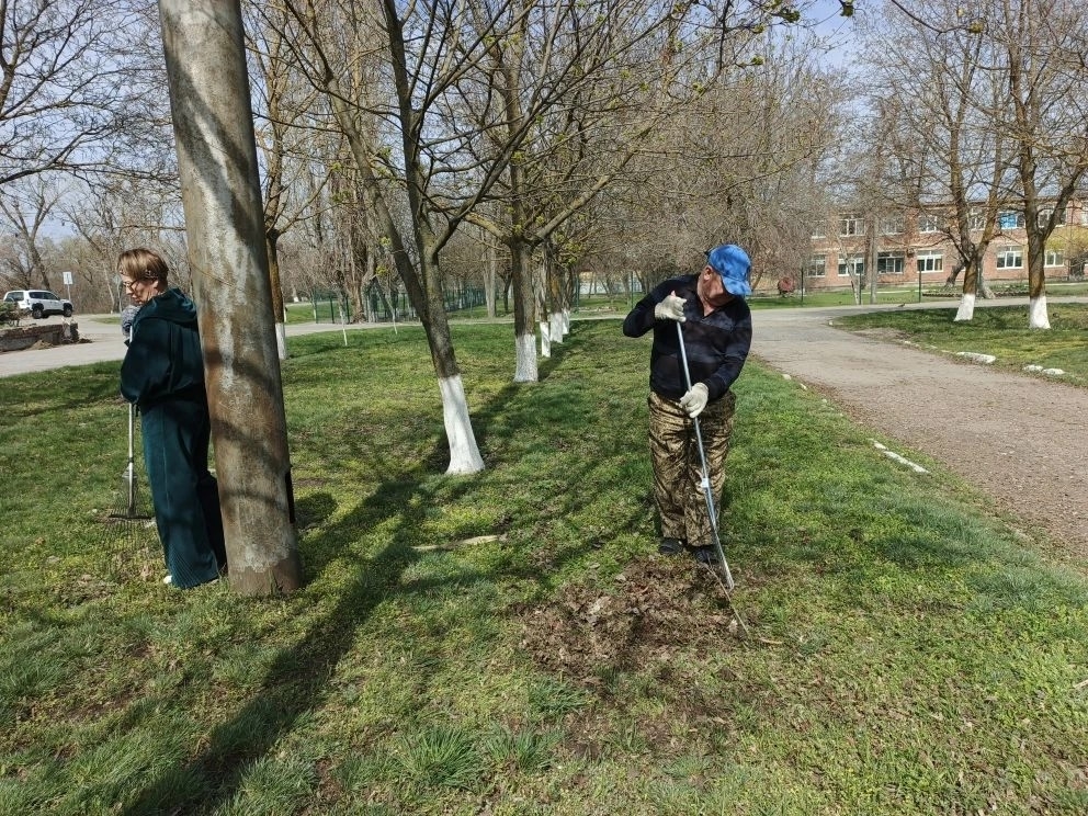 Вооружившись всем необходимым инвентарем, они с усердием взялись за работу. Благодаря их неустанным усилиям, территория, прилегающая к Дому культуры, теперь сверкает чистотой, избавившись от сухих веток, опавшей листвы и скопившегося за зиму мусора.
