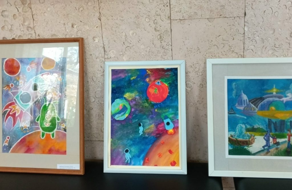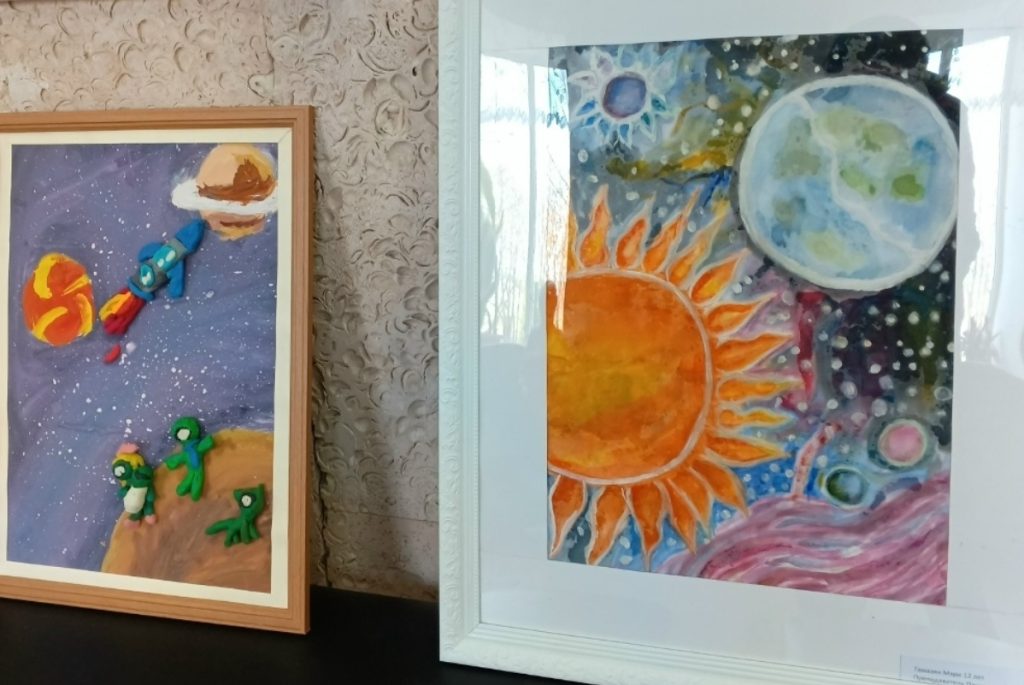 Учащиеся с энтузиазмом воплощают свои фантазии о далёких галактиках, инопланетянах и будущих межгалактических путешествиях в рисунках. Часто в работах встречаются звёзды, спутники и, конечно, наша голубая планета Земля.