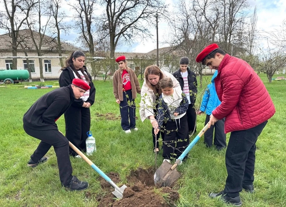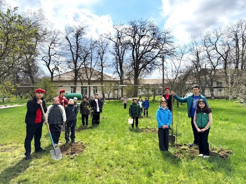 Юные натуралисты с энтузиазмом посадили грушу, сирень, грецкий орех и экзотический гибискус.