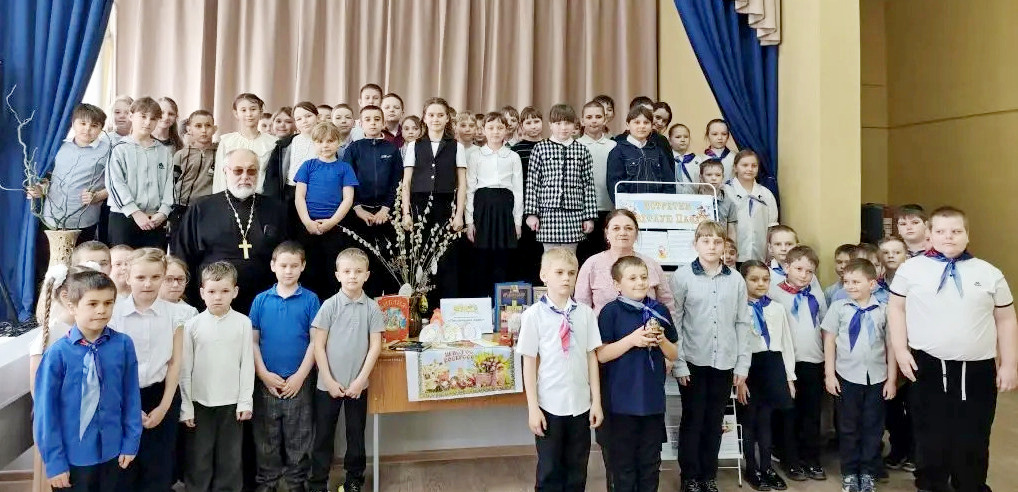 В Золотаревской школе для обучающихся начальных классов прошел православный час «Светлое Христово Воскресение!», на который был приглашен настоятель храма Смоленской иконы Божьей Матери «Одигитрия», иерей Анатолий Потапьев.
