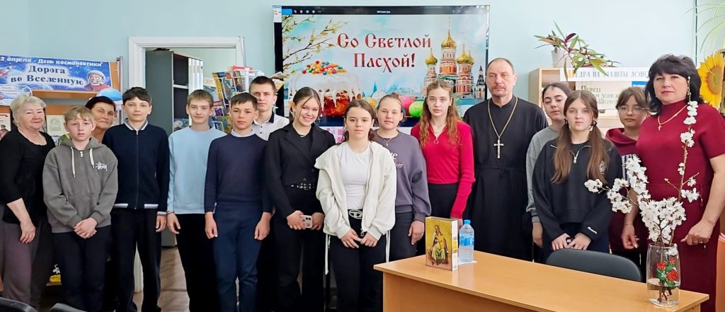 В преддверии праздника Пасхи, в Вершиновской сельской библиотеке состоялся православный час «Пасха: история и традиции». Гостем встречи стал отец Георгий, священнослужитель храма иконы Пресвятой Богородицы «Владимирская» из станицы Задоно-Кагольницкой. Отец Георгий рассказал ребятам о значении Пасхи в православной вере, о её исторических корнях и традициях празднования. Он объяснил, почему Воскресение Христово является центральным событием для каждого христианина, символом победы жизни над смертью. Ребята с интересом слушали отца Георгия, задавали вопросы, делились своими мыслями и впечатлениями.