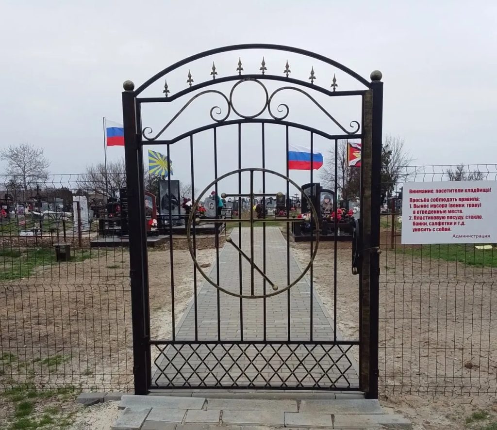 Мы увидели, что на кладбище заменена ограда, у входа — добротная калитка, выполненная в христианском стиле, от неё тротуарной плиткой выложена дорожка, ведущая к могилам героев, погибших в зоне СВО; в изгородях — слева и справа по две калитки для выноса мусора к специально отведенным для этого местам; выкорчеваны дикорастущие кустарники, спилены и убраны старые деревья, от поросли и травы очищена вся территория, приведены в порядок даже могилы, которые считались заброшенными, так как за ними никто не ухаживал (возможно, уже и родственников нет в живых).