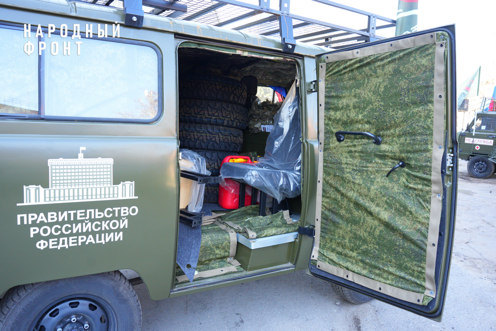 “Наш главный приоритет в том, чтобы ребята в случае ранения были оперативно доставлены в госпиталь и восстановили своё здоровье. Поэтому каждый автомобиль, а сегодня это легендарные “буханки”, обшиты специальными одеялами из высокомолекулярного полиэтилена. Испытания, проведённые совместно с военными, показывают, что при разрыве боеприпасов он поглощает до 95% осколков. Соответственно, у ребят даже в самой сложной ситуации есть шансы остаться в живых, пересесть на другой транспорт и двигаться дальше. Это очень важная работа, которую мы осуществляем при поддержке Правительства Российской Федерации, лично Дениса Валентиновича Мантурова, который помогает нам находить средства для того, чтобы оборудовать автомобили”, – рассказал руководитель Исполкома Народного фронта Михаил Кузнецов.