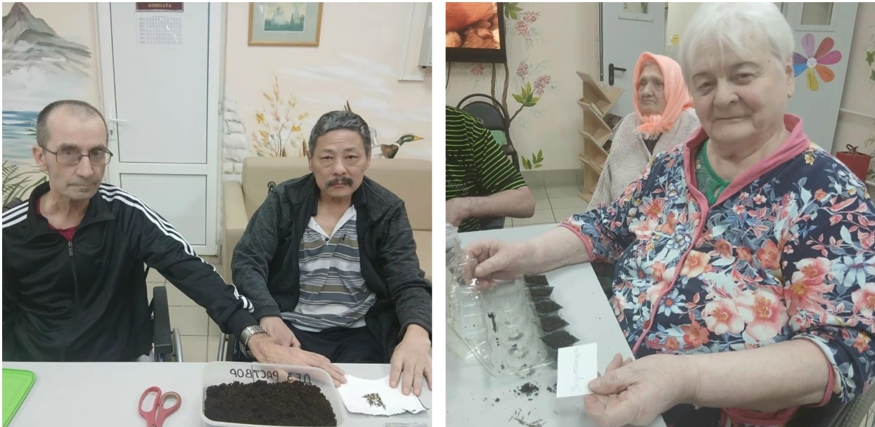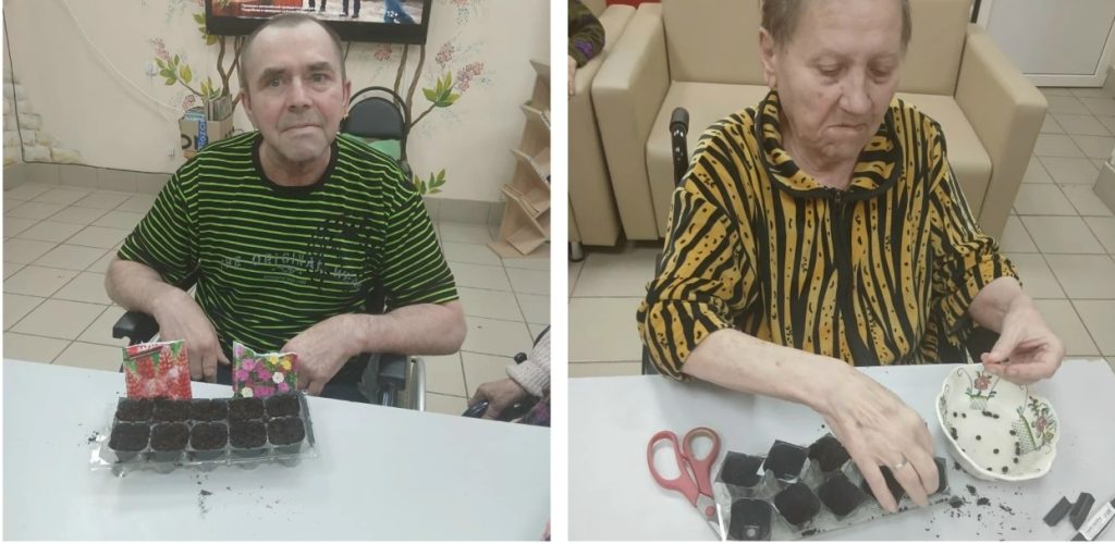 Получатели услуг Отделения милосердия Семикаракорского ДИПИ с искренним энтузиазмом и радостью участвуют в процессе посадки семян для рассады.