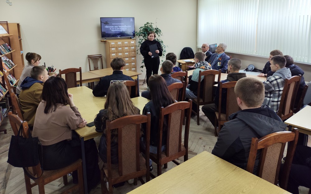 Библиотекарь отдела обслуживания читателей М.Н. Гайтюкевич проинформировала студентов о статистике: 116 человек из Семикаракорского района были призваны для ликвидации, еще 12 проходили срочную службу в непосредственной близости от Чернобыльской АЭС. Десять наших земляков отмечены орденами Мужества, двое — медалями ордена «За заслуги перед Отечеством» II степени, а 57 ликвидаторов получили медаль «За спасение погибавших». Молодежь также ознакомилась с фрагментами документального фильма «Долгое эхо Чернобыля», узнала о теме Чернобыльской катастрофы в кинематографе и литературе.