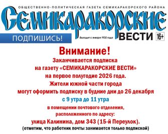 Заканчивается подписка на I полугодие 2026 года на газету «Семикаракорские вести»